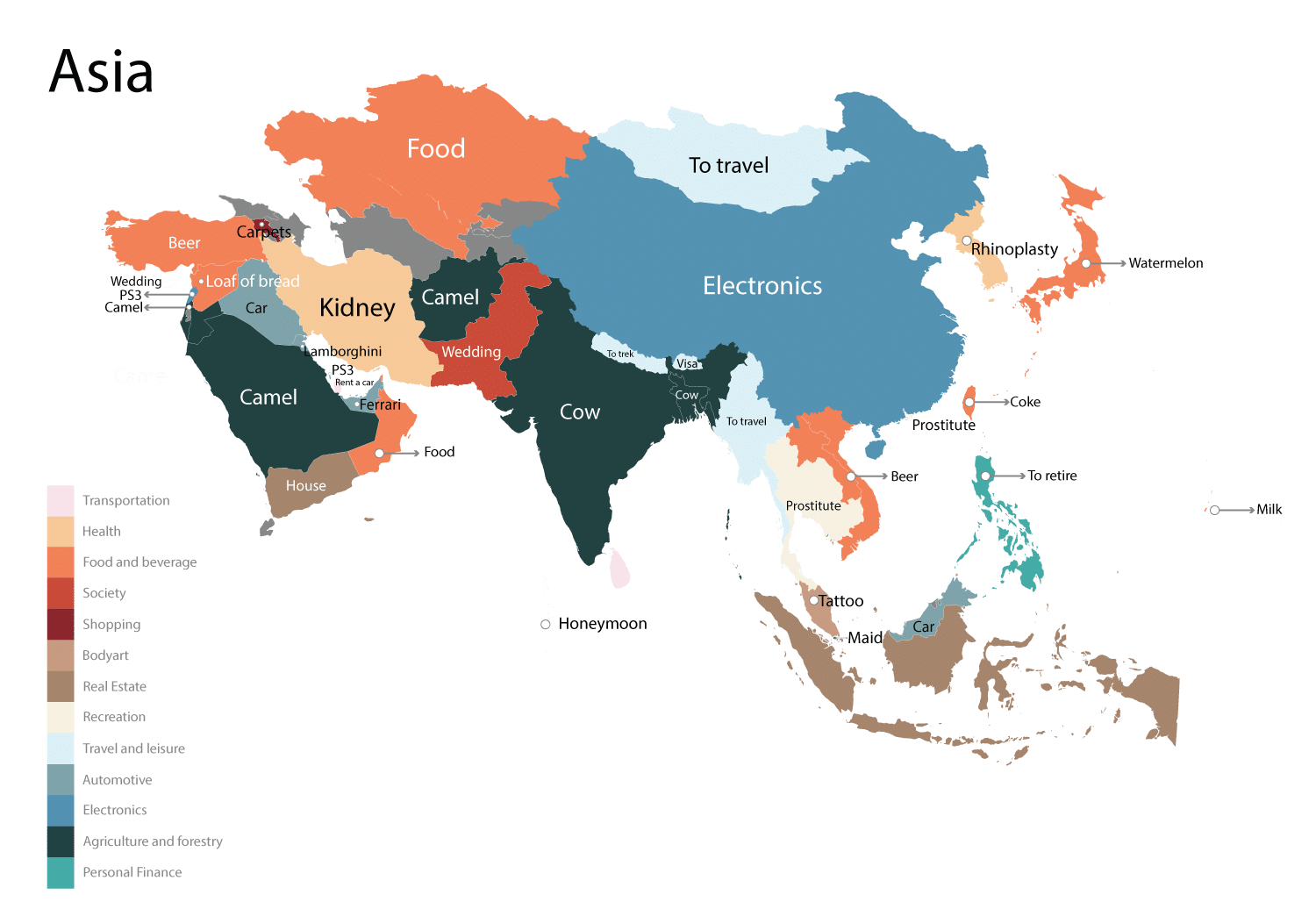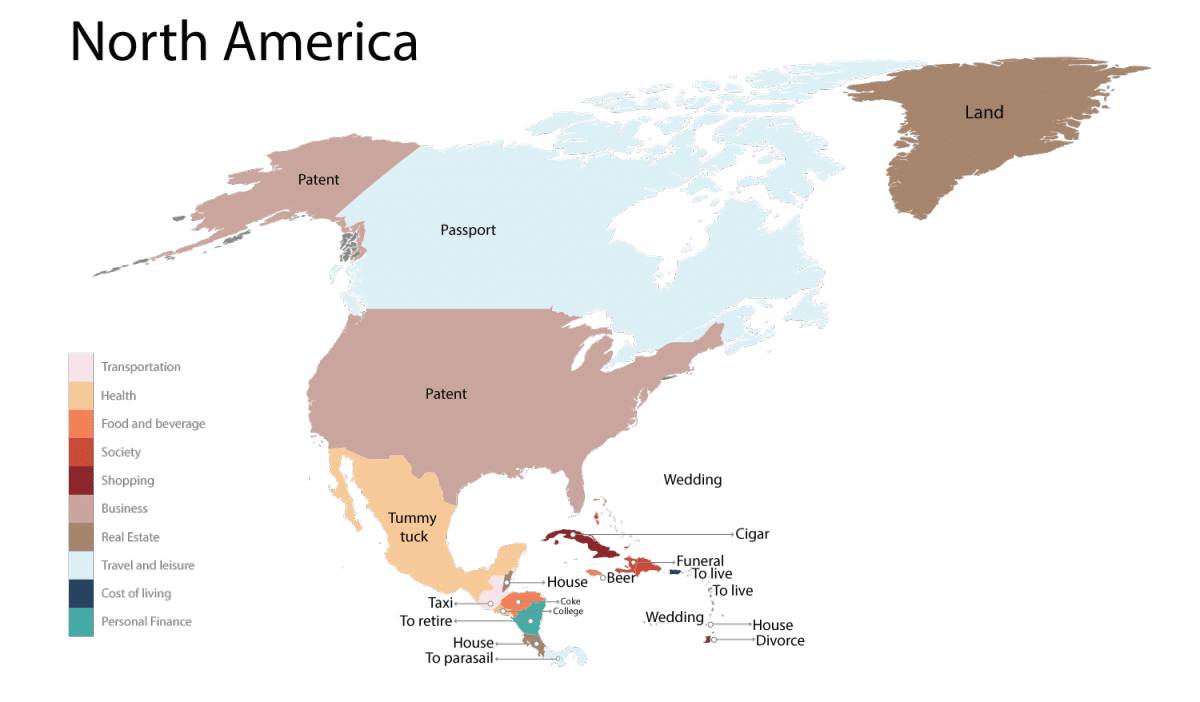 Una mappa racconta, paese per paese, quali sono i prodotti o le prestazioni di cui è più cercato il prezzo su Google.