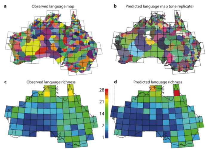 Questo modello è stato applicato inizialmente sulla sola Australia, ma si è rivelato veritiero dal momento che ha individuato 407 lingue, una in più delle 406 effettivamente conosciute: