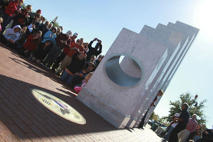 Eppure, questi cinque monoliti racchiudono un messaggio segreto, visibile solo una volta l’anno, per pochi secondi, alle 11:11 dell’11 novembre, la giornata dei veterani negli Stati Uniti.
