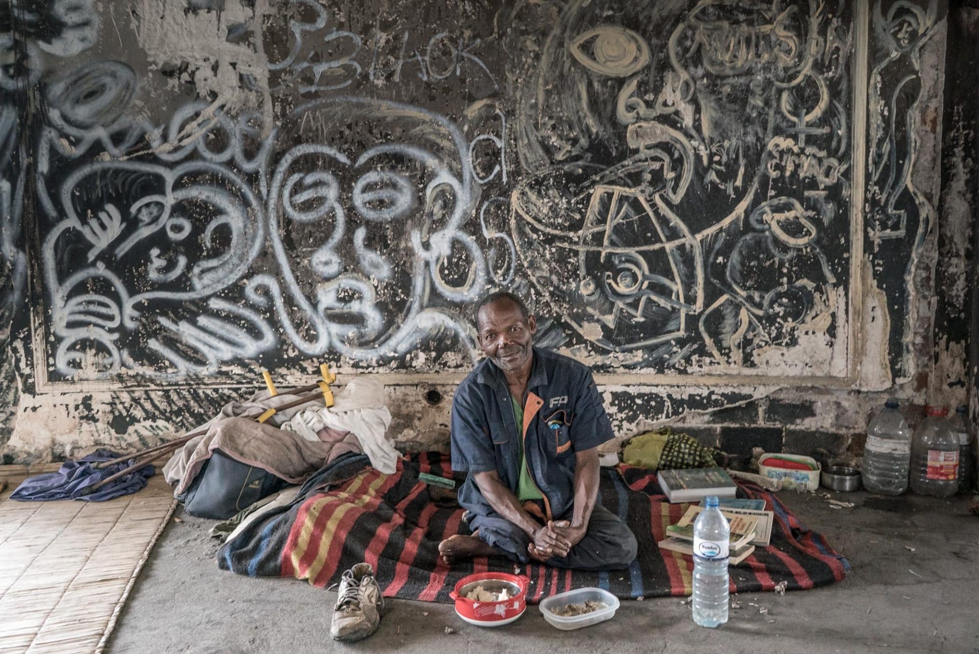 Oggi marmi e stucchi sono stati sostituiti da murales e scritte su muri anneriti dai fuochi accesi per scaldarsi e cucinare, le trombe degli ascensori e i cortili interni riempiti di rifiuti accumulati negli anni. Una decadenza piena di vita, in contrasto con l’immagine lussuosa disegnata dagli architetti che lo costruirono.