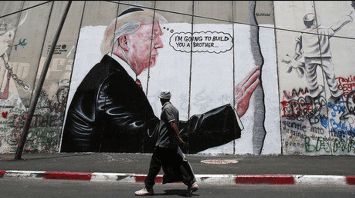 I due murales apparsi sul muro di Betlemme che raffigurano Donald Trump