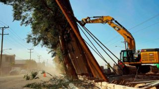 Il vento fa crollare una parte del muro di Trump che divide il Messico dagli Stati Uniti