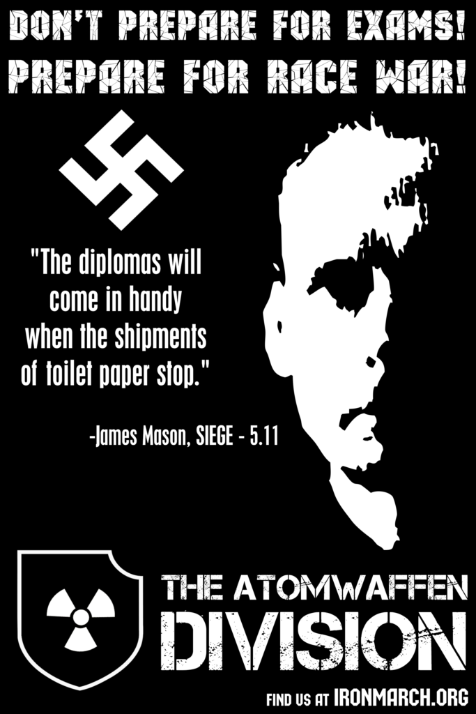 E, secondo l’Anti-Defamation League , l’attività di Atomwaffen è stata segnalata in diversi stati, tra cui Colorado, Florida, Illinois, Pennsylvania, Texas, Massachusetts, Washington e Wisconsin.