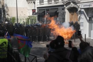 Decine di scooter inoltre sono stati dati alle fiamme e i casseur hanno usato un furgone come barriera per impedire ai pompieri di spegnere le fiamme.