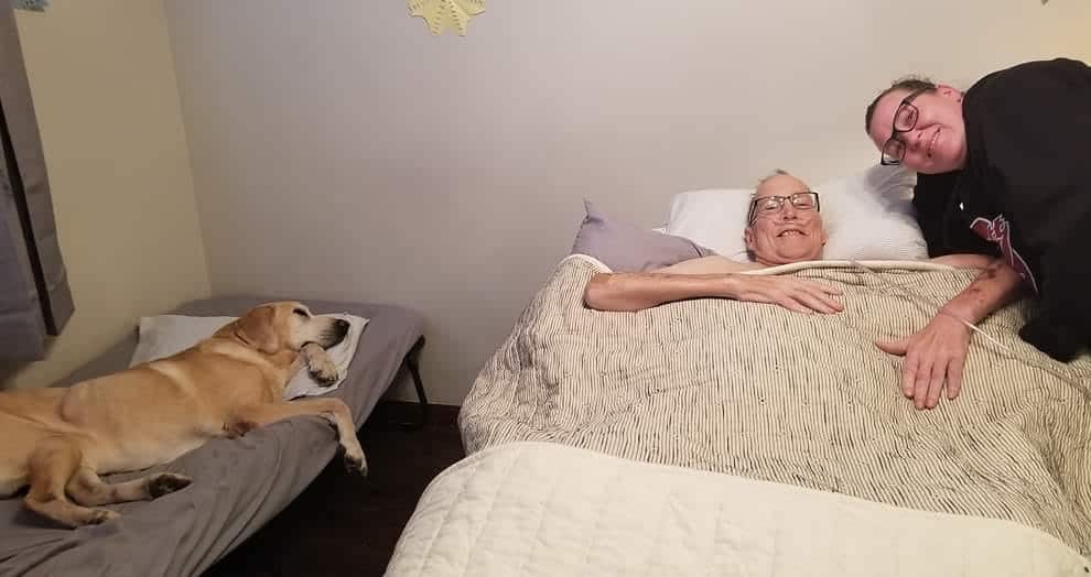 Il cane si è ammalato poco dopo che le condizioni del proprietario si sono aggravate. Il loro forte legame è immortalato da diverse foto scattate dai familiari e pubblicate su Facebook che mostrano l’uomo nel suo letto e il cane nella sua brandina senza mai perdersi di vista. “Quando mio padre tremava, il cane tremava, mio padre era irrequieto, il cane era irrequieto”, ha detto Heather ricordando la sofferenza dei due, che sembrano aver vissuto in simbiosi fino alla fine. Gunner e Daniel sarebbero morti a distanza di un’ora e mezza l’uno dall’altro. “Ho chiamato la clinica veterinaria in cui lavoravo. Lo abbiamo portato lì di corsa e non c’è stato nulla d’altro che addormentarlo per sempre. Un’ora e mezza dopo anche mio padre si è spento”. La storia ha fatto il giro della rete.