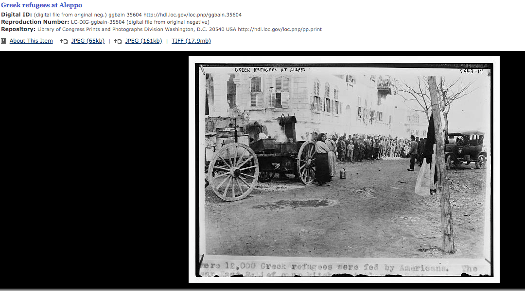 Questo documento conservato dalla Biblioteca del Congresso degli Stati Uniti, mostra alcuni rifugiati greci in un campo profughi ad Aleppo negli anni Venti.