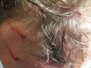 Ecco alcune immagini diffuse dal giovane delle ferite riportate, e in basso un video del giovane che racconta dell’attacco:
