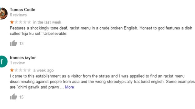 Alcuni hanno anche iniziato a lasciare recensioni negative del ristorante sulla sua pagina Google.