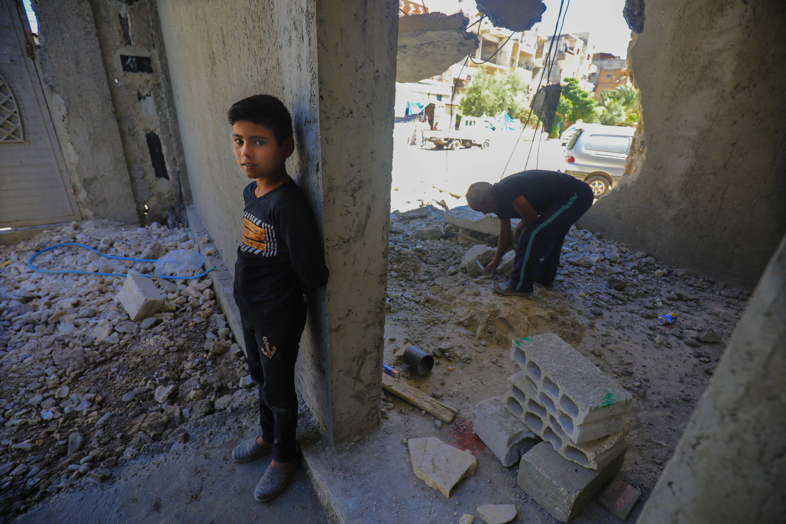 Secondo una ricerca precedente il 36 per cento degli edifici della città è completamente distrutto ma il livello di ricostruzione e ripristino delle abitazioni rimane ancora basso, con bambini che vivono nella costante paura che le loro case crollino. Nel corso degli ultimi quattro anni il ripristino della città, che nel periodo di picco dei bombardamenti ha subito 150 attacchi aerei al giorno, è stato minimo, costringendo i bambini a vivere in case danneggiate senza un posto dove imparare o giocare se non tra le rovine.