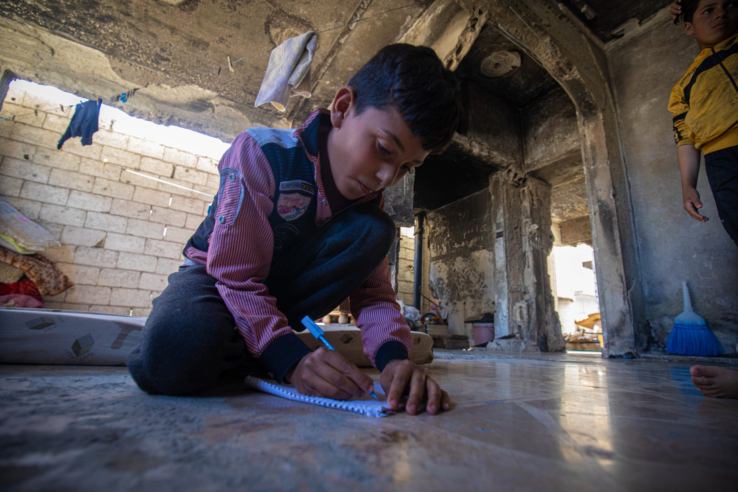 Nel 2015 suo marito è stato ucciso in un bombardamento e ora vive con i suoi quattro figli in una casa distrutta di Raqqa, senza acqua né elettricità. La popolazione di Raqqa ha assistito a profonde violenze e l’impatto sul loro benessere psico-sociale è significativo: i vari fattori di stress legati al contesto siriano, tra cui l’esposizione alla violenza, discriminazione, povertà e lutti hanno un impatto negativo sulla salute mentale e sul benessere dei bambini.