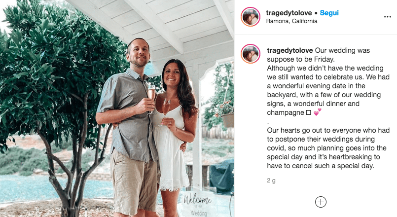 Come annunciano sulla pagina Instagram che hanno in comune “tragedytolove” (dalla tragedia all’amore), il loro matrimonio era previsto per venerdì 15 maggio, ma l’emergenza pandemia gli ha costretti a rinunciare alle nozze. “I nostri cuori vanno a tutti quelli che hanno dovuto rimandare il proprio matrimonio durante il Coronavirus. Questa data speciale comporta un tale sforzo di pianificazione che doverlo cancellare spezza il cuore”, scrivono sulla pagina. Un ostacolo minore per due che sono scampati a una tragedia.