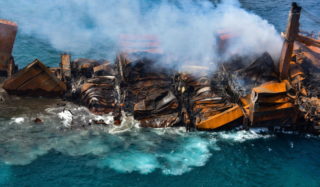 Il cargo mercantile è naufragato al largo della costa orientale dopo un incendio a bordo, dando inizio al peggior disastro ambientale della storia del Paese, come hanno dichiarato le autorità locali.