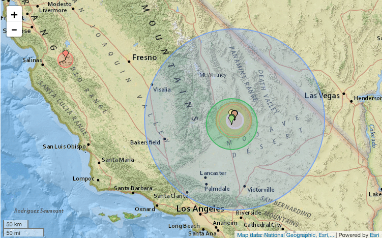 L’epicentro è stato localizzato a circa 240 chilometri a nord-est di Los Angeles, a una profondità di 8,7 chilometri.