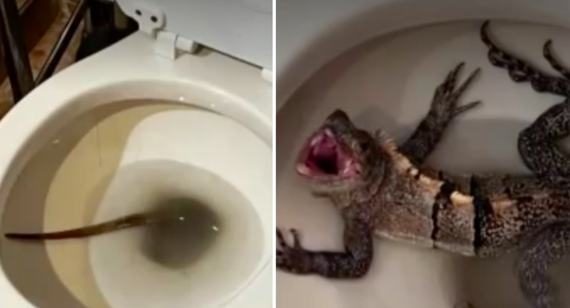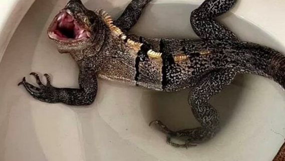 Terrore in bagno: dal wc sbuca un’iguana. “Ero sotto choc e paralizzato, l’ho sentita arrivare sotto la tavoletta”