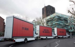 La notte del 14 giugno 2017, un incendio scoppiato alla Grenfell Tower, un palazzo di 24 piani situato nel quartiere di North Kensington a Londra, causò la morte di 71 persone.