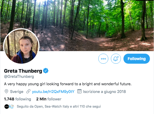 Per stare al gioco, e prendersi a sua volta gioco di Trump, Greta Thunberg ha cambiato la sua biografia Twitter inserendo le parole usate da Trump: “ragazzina molto felice piena di speranza per un bellissimo e brillante futuro”.