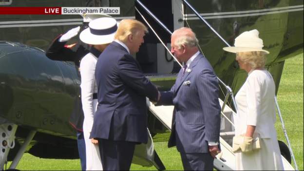 Il presidente Trump e la first lady sono stati accolti dal principe Carlo e dalla duchessa di Cornovaglia, Camilla.