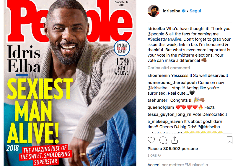 Lo stupore di Idris è comprensibile, non tanto perché non possa essere all’altezza del titolo, anzi, ma l’ultimo “Sexiest Man Alive” afroamericano eletto da People fu Denzel Washington nel 1996.