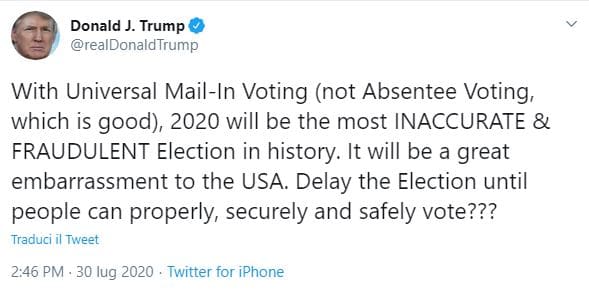 Tweet di Trump: “Rinviamo le elezioni?”
