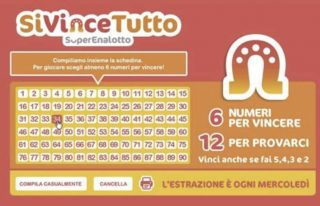 Oggi, mercoledì 18 settembre 2019, alle ore 20 va in scena l’estrazione del gioco “Si vince tutto“, concorso speciale del SuperEnalotto, lanciato il 27 aprile 2001, che si svolge ogni mercoledì sera e mette in palio l’intero montepremi. Niente accumulo come avviene invece con il Superenalotto.