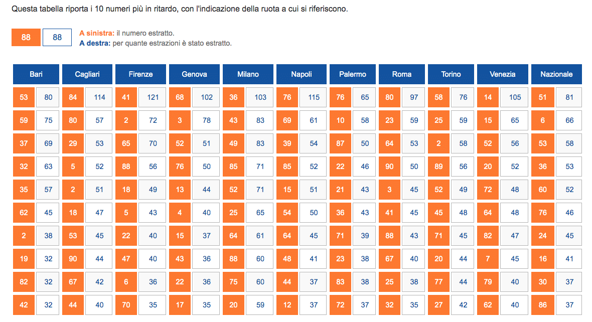Numeri ritardatari Lotto | Tutte le ruote