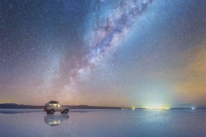 Kordan ha scattato alcune impressionanti fotografie con la sua Nikon indicata per l’astrofotografia ed è riuscito a catturare la Via Lattea che si riflette sull’enorme distesa di sale. Il risultato è assolutamente mozzafiato.