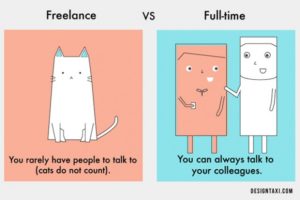 L’illustratrice Caisa Nilaseca ha messo a confronto i pro e i contro di questi due diversissimi mondi del lavoro in una serie di vignette, che sicuramente saranno condivise da chi ha lavorato almeno un periodo come freelance.