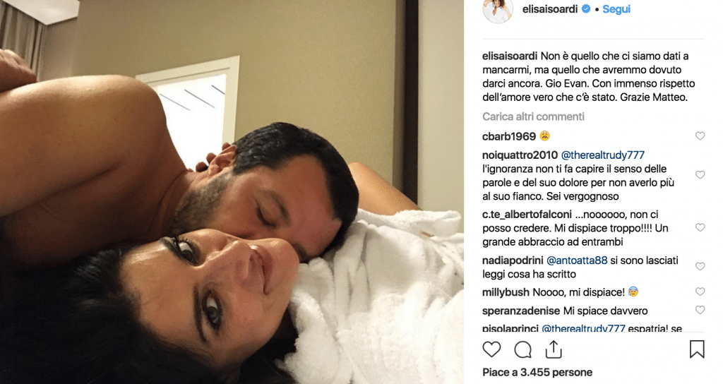 Nella descrizione del post si legge “Non è quello che ci siamo dati a mancarmi, ma quello che avremmo dovuto darci ancora. Gio Evan. Con immenso rispetto dell’amore vero che c’è stato. Grazie Matteo”.