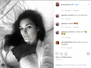 La modella Alena Seredova ha pubblicato sul suo profilo Instagram un selfie in cui si mostra al naturale, subito dopo il risveglio. Uno scatto sensuale, in cui il pigiama aperto lascia vedere il seno prosperoso contenuto in un reggiseno in pizzo, accompagnata da una scritta: “Mattinata pigra”.