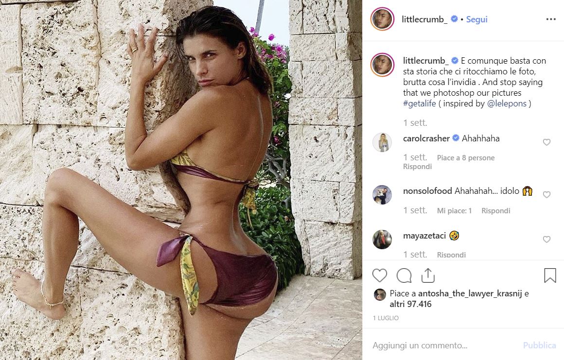 “E comunque basta con sta storia che ci ritocchiamo le foto, brutta cosa l’invidia. And stop saying that we photoshop our pictures #getalife”, ha scritto qualche giorno fa la Canalis accanto alla foto in cui appare con un enorme sedere.