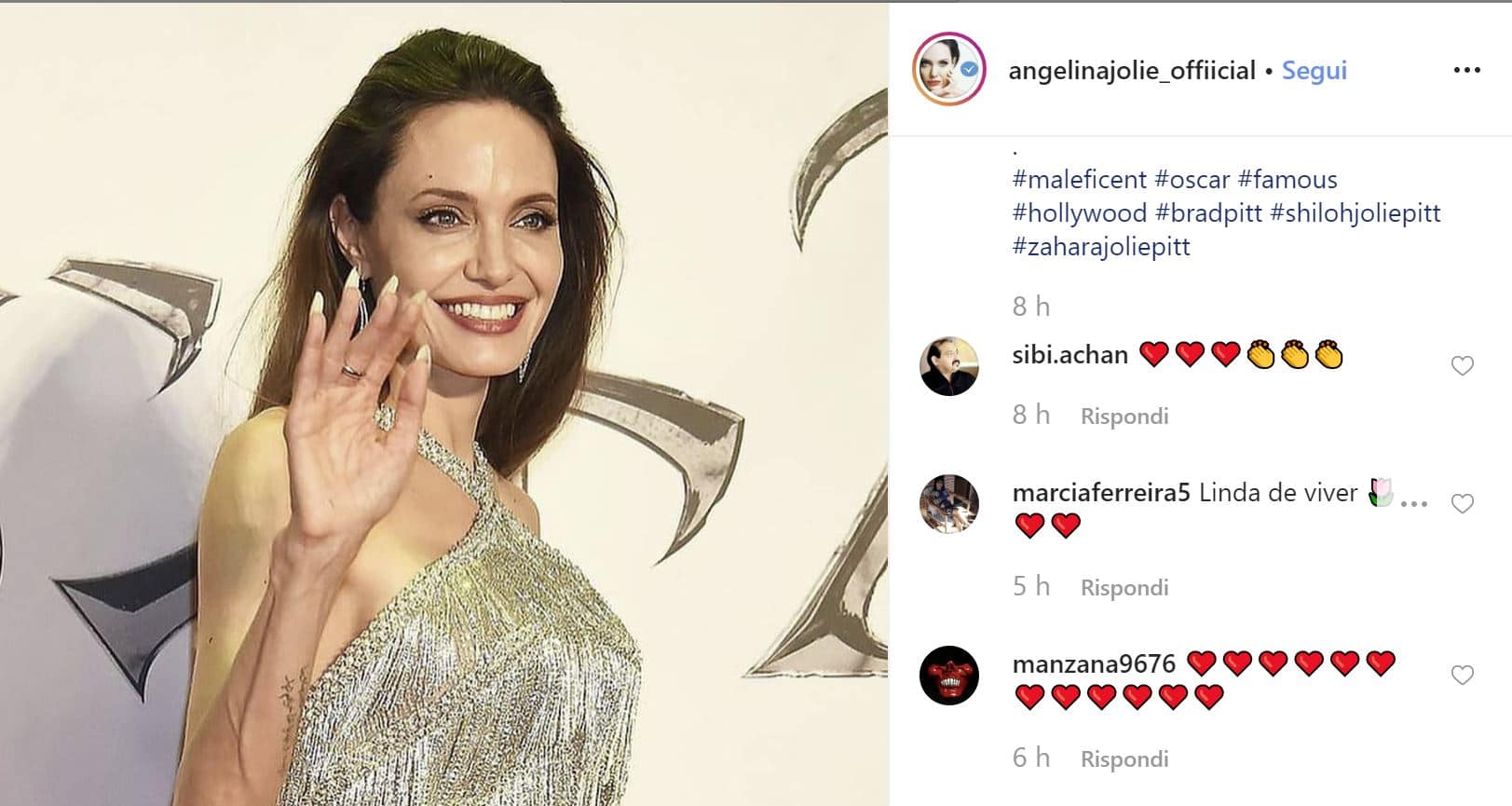 A commento di una delle sue foto in cui il braccio e la mano di Angelina sembrano scheletriche, i fan dell’attrice scrivono.