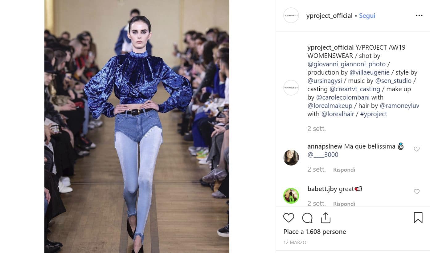 Ma i nuovi “jeans” proposti dal brand parigino, oltre ad essere così particolari, hanno anche un’altra caratteristica che non ha lasciato indifferenti gli utenti del web: il prezzo. Infatti i janties – così pare siano stati soprannominati gli slip denim – vengono venduti alla cifra di 295 euro. Tre i colori disponibili: blu, chiari e neri. Y/Project ci propone anche degli outfit – giusto per farci capire come indossarli: una t-shirt infilata nel jeans, in modo che spunti rigorosamente (e inevitabilmente) fuori dagli slip e una cinta in bella mostra a valorizzarli. Oppure con dei collant.