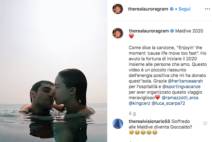 “Ho avuto la fortuna di iniziare il 2020 insieme alle persone che amo. Questo video è un piccolo riassunto dell’energia positiva che mi ha donato quest’isola. Grazie” scrive Aurora Ramazzotti su Instagram per commentare il filmato.
