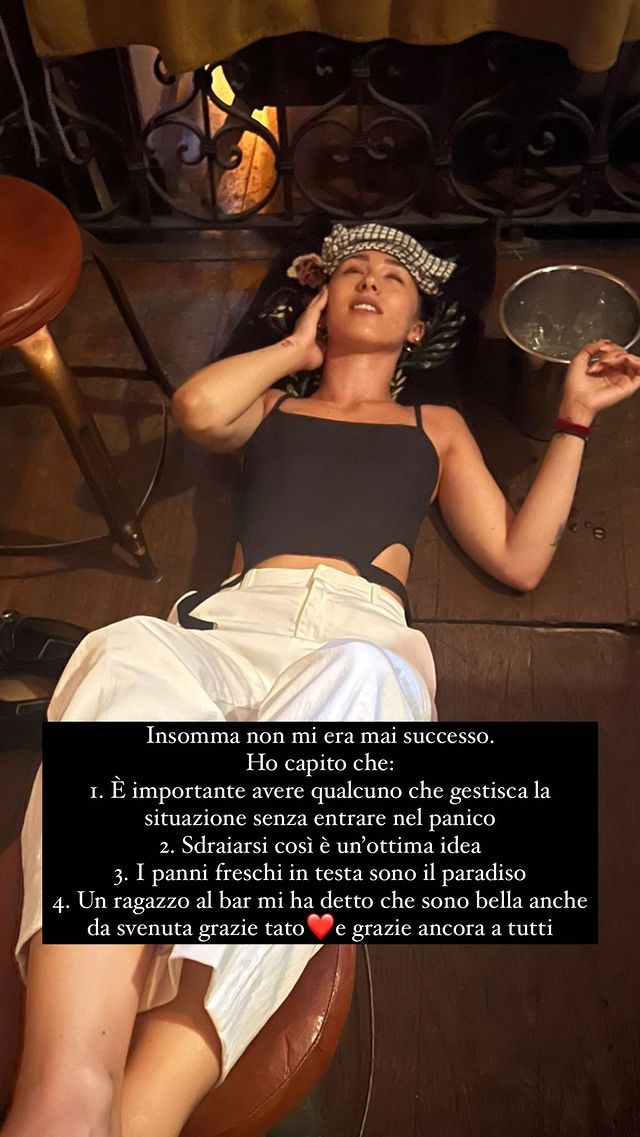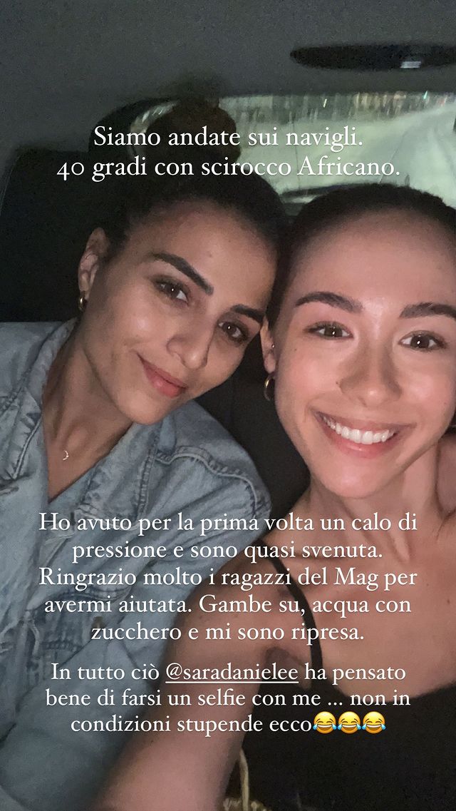A raccontare quanto accaduto è stata la stessa giovane, che sul suo profilo Instagram ha scritto: “Siamo andate sui Navigli. 40 gradi con scirocco africano. Ho avuto per la prima volta un calo di pressione e sono quasi svenuta. Ringrazio molto i ragazzi del Mag per avermi aiutata. Gambe su, acqua con zucchero e mi sono ripresa”.