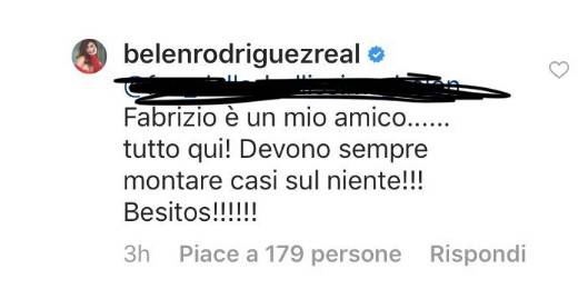 Belen si è trovata costretta a rispondere: “Fabrizio è un mio amico… tutto qui! Devono sempre montare casi sul niente!!! Besitos”.