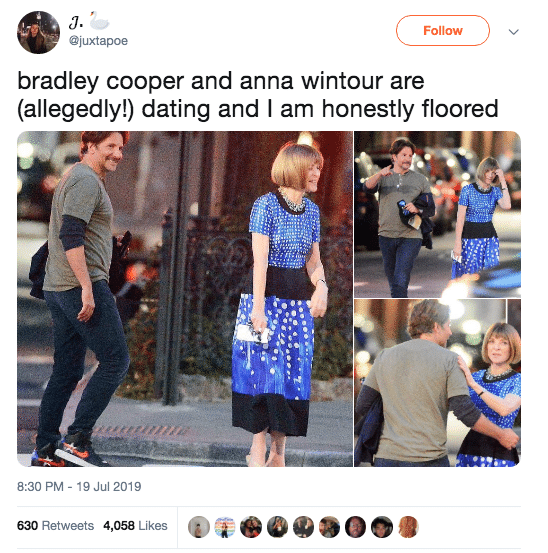 “Se Bradley Cooper sta con Anna Wintour allora io sto con Jared Leto”, scrive qualcun altro commentando l’assurdità della notizia.