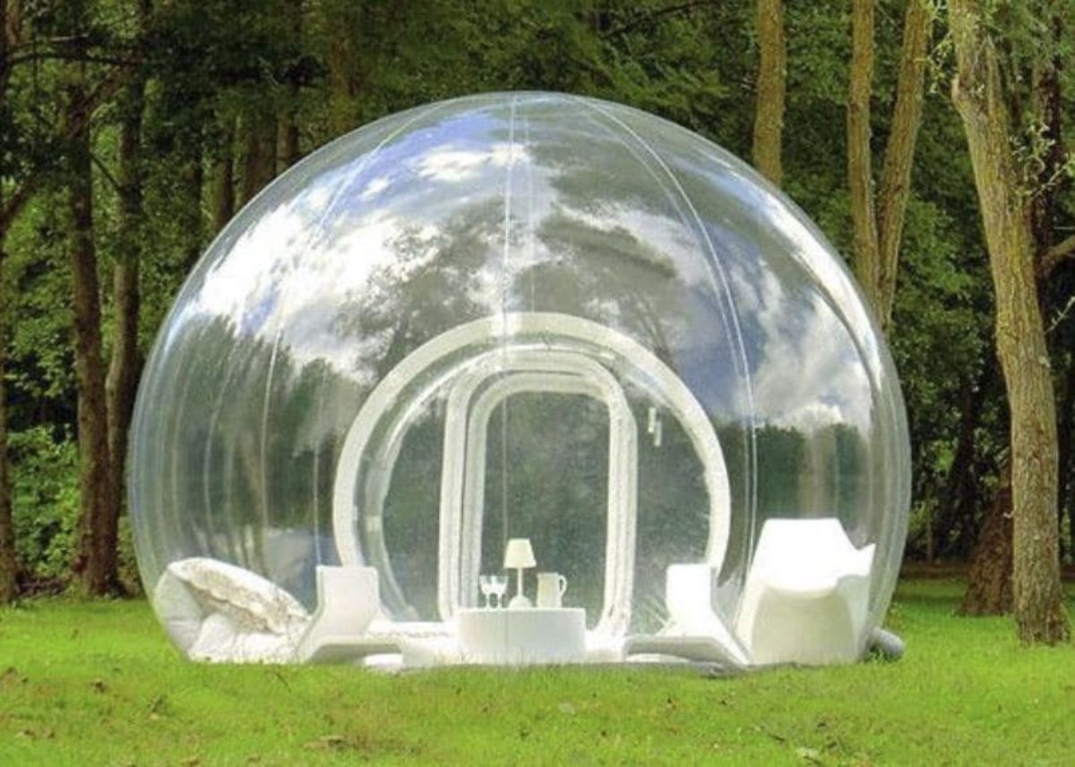 Cosa aspettarsi all’interno della bolla? Letti, cuscini, sedie e tavoli per vivere un’esperienza a 360 gradi nel cuore del bosco con tutti i comfort necessari. Non si tratta, infatti, di un semplice campeggio, ma di un pernottamento speciale all’interno di una bolla trasparente dai tratti sofisticati.