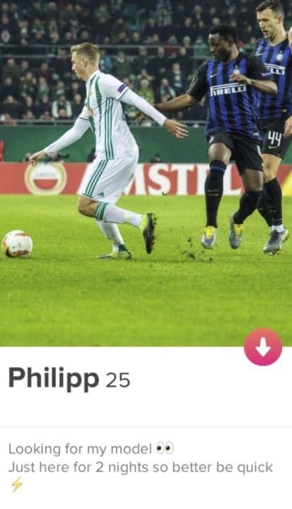 Ma il 26enne non pensa solo al calcio. Iscritto a Tinder, scrive: “Sono a Milano solo per due notti, quindi meglio che siate veloci. Sto cercando la mia modella”, ha scritto nel suo “annuncio”. Il messaggio diventa virale.