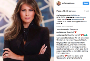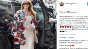 Dolce & Gabbana negli ultimi mesi ha vestito più volte Melania Trump, lei stessa una ex modella, sia nel suo ritratto ufficiale per la Casa Bianca che durante il suo viaggio a Taormina per il G8, che l’ha vista indossare un abito da 50mila euro.