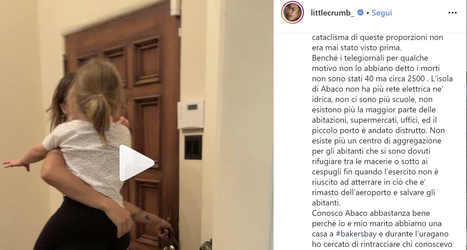 “Questo video risale al 19 di Settembre,un giorno speciale e vi spiego perché ! 4 settimane fa l’uragano Dorian si è abbattuto sull’isola di Abaco con effetti disastrosi. È la prima volta che nelle Bahamas un’intera comunità viene completamente cancellata nel giro di 3 giorni da un disastro naturale. Gli abitanti delle Bahamas sono in un certo senso familiari agli uragani ma un cataclisma di queste proporzioni non era mai stato visto prima”, scrive Canalis sul social, in cui condivide il video di lei che apre la porta di casa ai rifugiati.