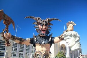 In una location unica, i famosi carri si esibiscono sul Lungomare di Viareggio, forse uno dei più belli d’Italia, con gli edifici in stile liberty che si affacciano sulla spiaggia. D’altronde la carta pesta è stata inventata proprio a Viareggio, e ogni anno viene utilizzata per creare carri sempre più belli, sfrutto appunto della creatività dei viareggini.