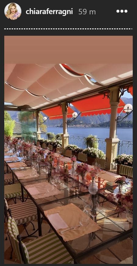 Nelle numerose stories pubblicate dalla fashion blogger su Instagram si vede la comitiva partire da Milano e raggiungere il lago, poi una foto di gruppo e, infine, la tavola imbandita per gli ospiti.