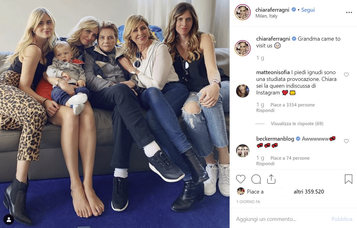 In modo particolare, come testimoniato da diverse stories pubblicate dalla fashion blogger, Chiara era particolarmente felice per la presenza della nonna. La signora – madre di Marina Di Guardo – è anziana e sta su una sedia a rotelle. È arrivata a Milano per rivedere la nipote e il pronipote.