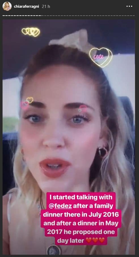 “Era il luglio del 2016 ed ero a una cena con i miei genitori e le mie sorelle e proprio quella sera ho iniziato a parlare con Fedez”, dice Chiara Ferragni, che spiega ancora che un anno dopo, nel maggio del 2017, si trovava in quello stesso castello. Il giorno dopo, il futuro marito le chiese di sposarlo, nella cornice pazzesca dell’Arena di Verona, durante un concerto.
