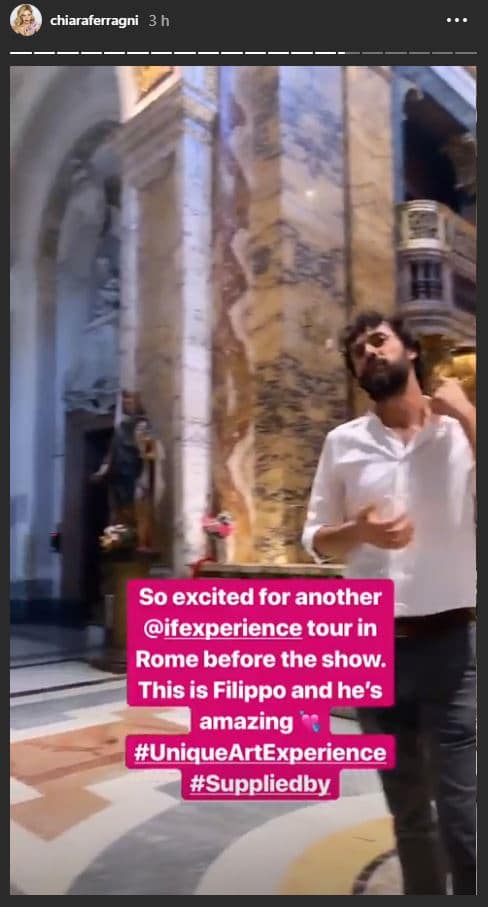 “È pazzesco”, scrive l’influencer di Cremona in una storia commentando la bellezza della chiesa romana. Nella stessa storia si sente Cosmelli raccontare di Caravaggio e sotto la voce di Fedez che integra le spiegazioni della “guida” con delle nozioni sull’artista.
