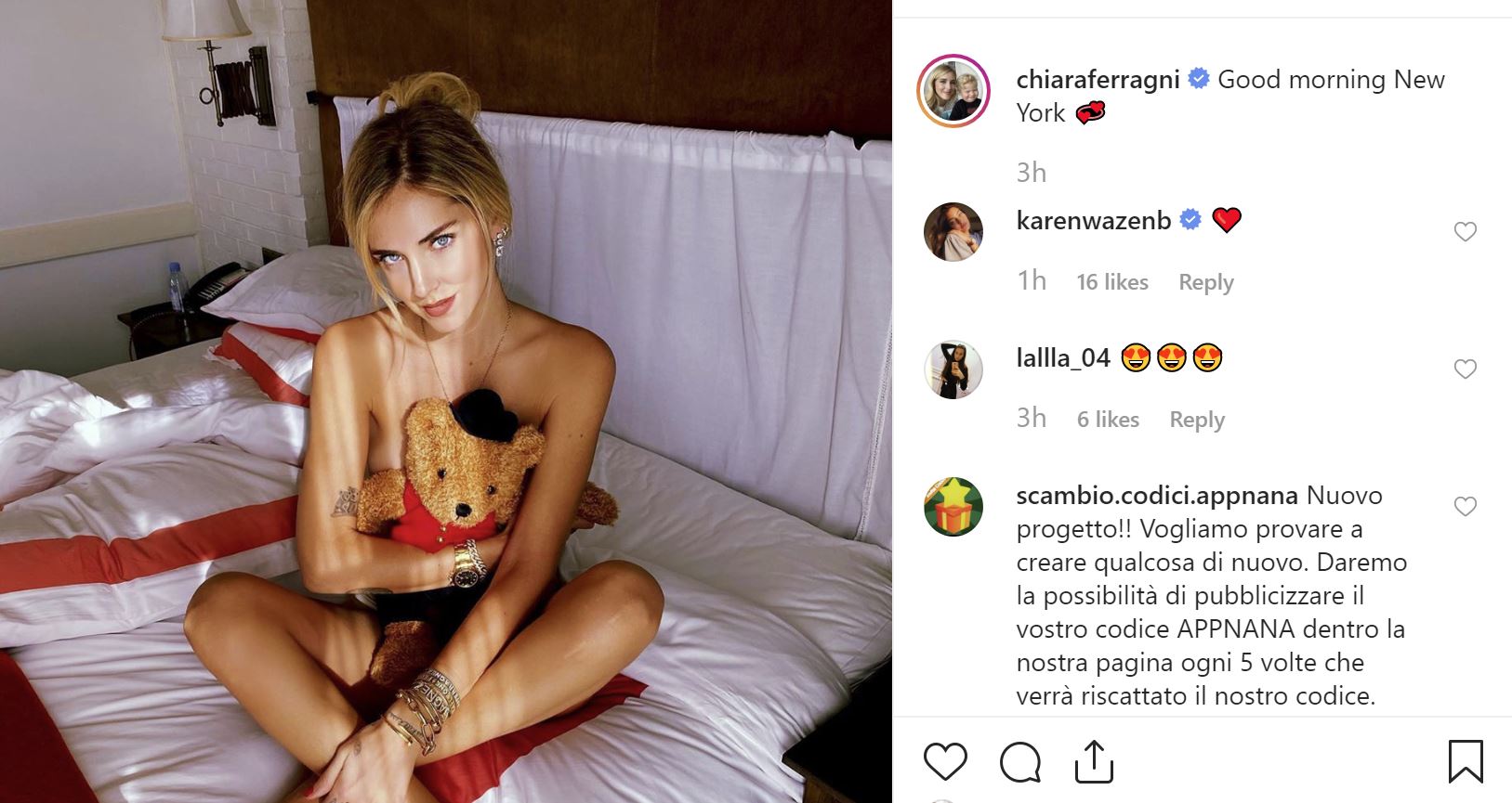 “Fedez io non mi fiderei di quell’orso”, commenta su Instagram un fan di Chiara Ferragni.