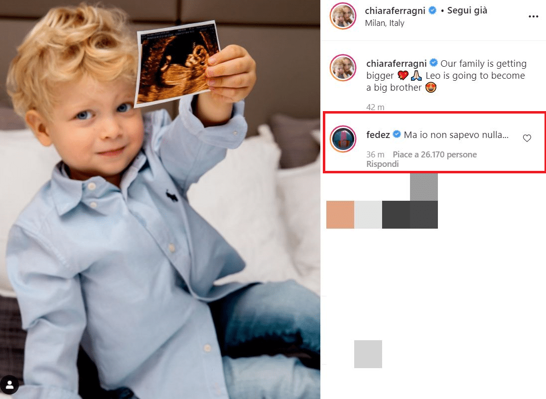 Quello che ha divertito tantissimi follower dei Ferragnez è stata però la reazione di Fedez. Il rapper, da poco tornato in radio con il nuovo singolo “Bella storia”, ha commentato la fotografia della moglie con una frase che ha immediatamente conquistato migliaia di like: “Ma io non ne sapevo nulla…”, un commento dal taglio ironico che ha divertito il web.
