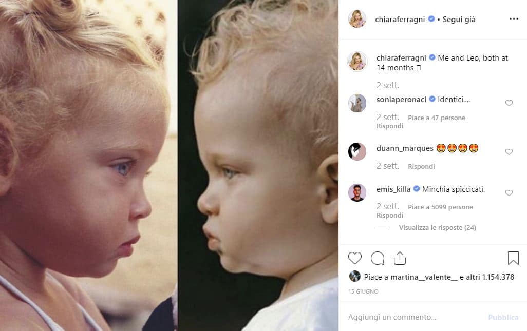 Già un paio di mesi fa, Chiara Ferragni aveva sottoposto ai suoi milioni di follower la straordinaria somiglianza con Leone. A 14 mesi i due erano praticamente due gocce d’acqua.