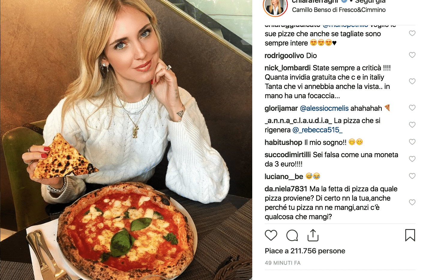 Ma tutto ha avuto inizio qualche mese fa, quando l’influencer di Cremona pubblicava sul suo account Instagram una foto che la ritraeva intenta a gustare una bella pizza margherita. Il problema è stato che, nonostante la fashion blogger più famosa d’Italia avesse in mano uno spicchio di pizza, sul tavolo ne aveva una integra, intatta, mai toccata!