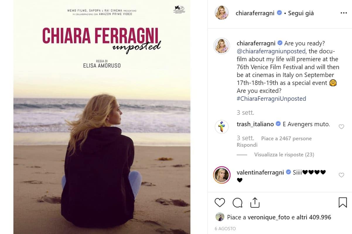 Sempre su Grazia – di cui Chiara Ferragni è guest editor in un numero, quello in edicola dal 29 agosto, dedicato al talento femminile – l’influencer fa riferimento al suo ultimo lavoro: Chiara Ferragni – Unposted, il film sul dietro le quinte della vita della fashion blogger, quella vita che non vediamo sui social, che verrà presentato al Festival di Venezia.